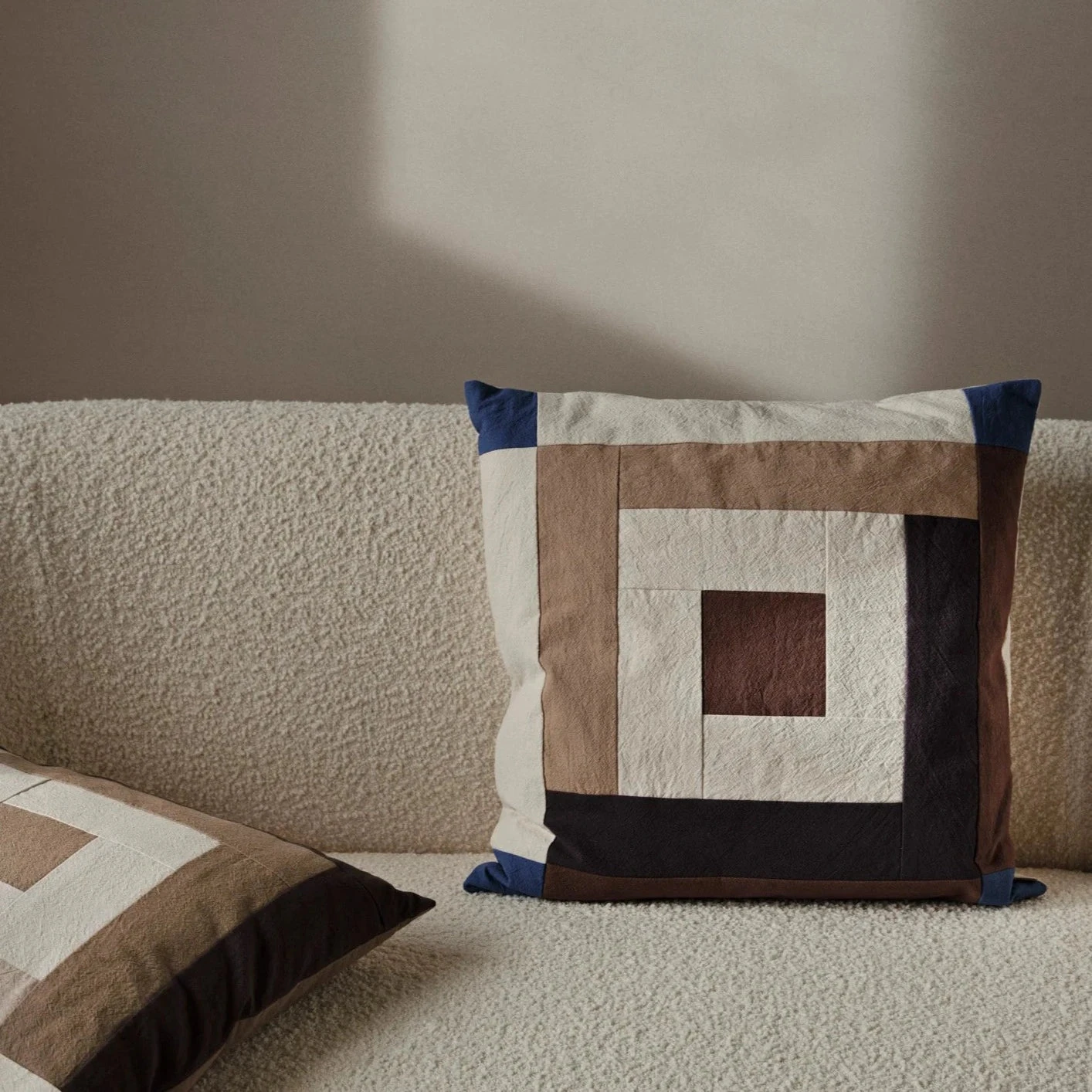 Ferm LIVING | Border Patchwork Cushion – Brown & Blue